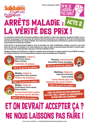 Aujourd’hui, le gouvernement Bayrou sous la pression de cette mobilisation indique renoncer aux trois jours de carence. Ce faisant, il en reste toujours un, mais en plus, le gouvernement persiste à vouloir imposer la baisse de l’indemnisation des jours d’arrêts maladie de 10%.